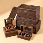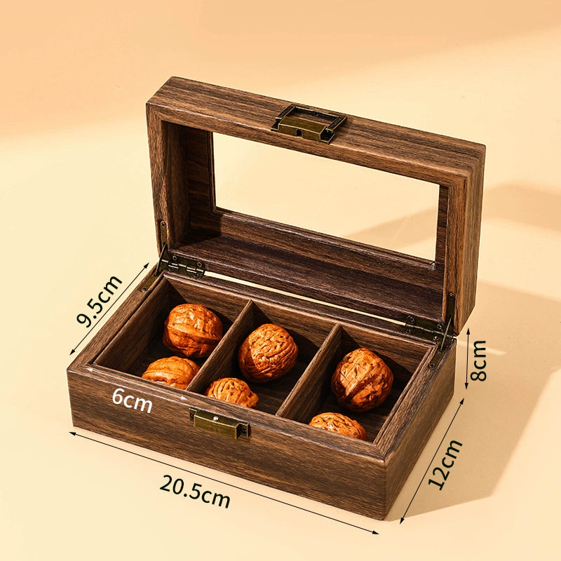 This solid wood Wenwan walnut storage box keeps your treasures neatly organized in spacious, divided compartments. A clear acrylic viewing window and vintage metal lock combine everyday convenience with timeless charm. Smooth hand-polished edges and reinforced hinges ensure durability, elegance, and long-lasting use — perfect for both storage and gifting.