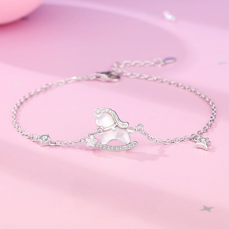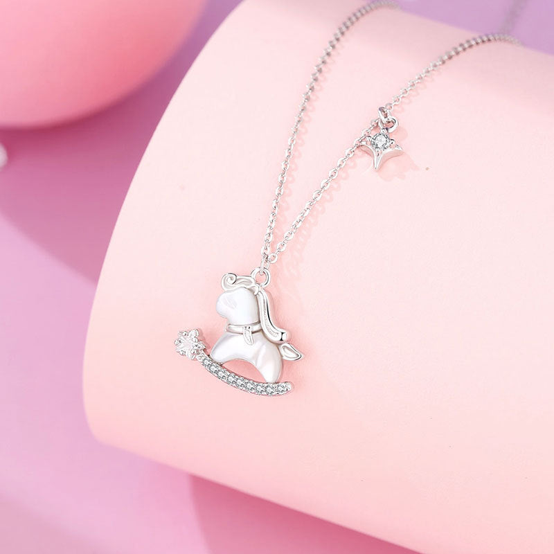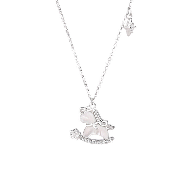 This Women’s S925 silver set features a starlight cute horse design across necklace, bracelet, and earrings, crafted with shell and cubic zirconia. A niche, whimsical collection that blends adorable horse motifs and delicate details, perfect for animal lovers and those who adore unique jewelry.