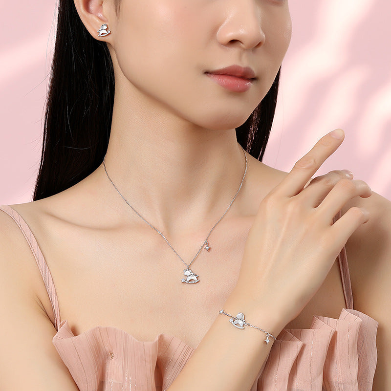 Women’s S925 Silver Starlight Cute Horse Set – Necklace, Bracelet, Earrings Niche Design Jewelry