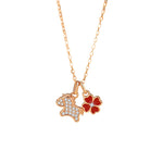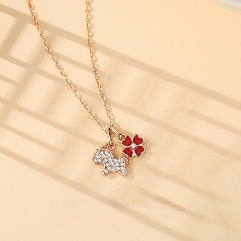 Design: Zodiac horse with lucky charm (four-leaf clover/heart/peach blossom) necklace
