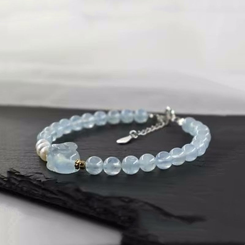 Product Name: Aquamarine Rabbit Bracelet with Fine Pearl Accents
