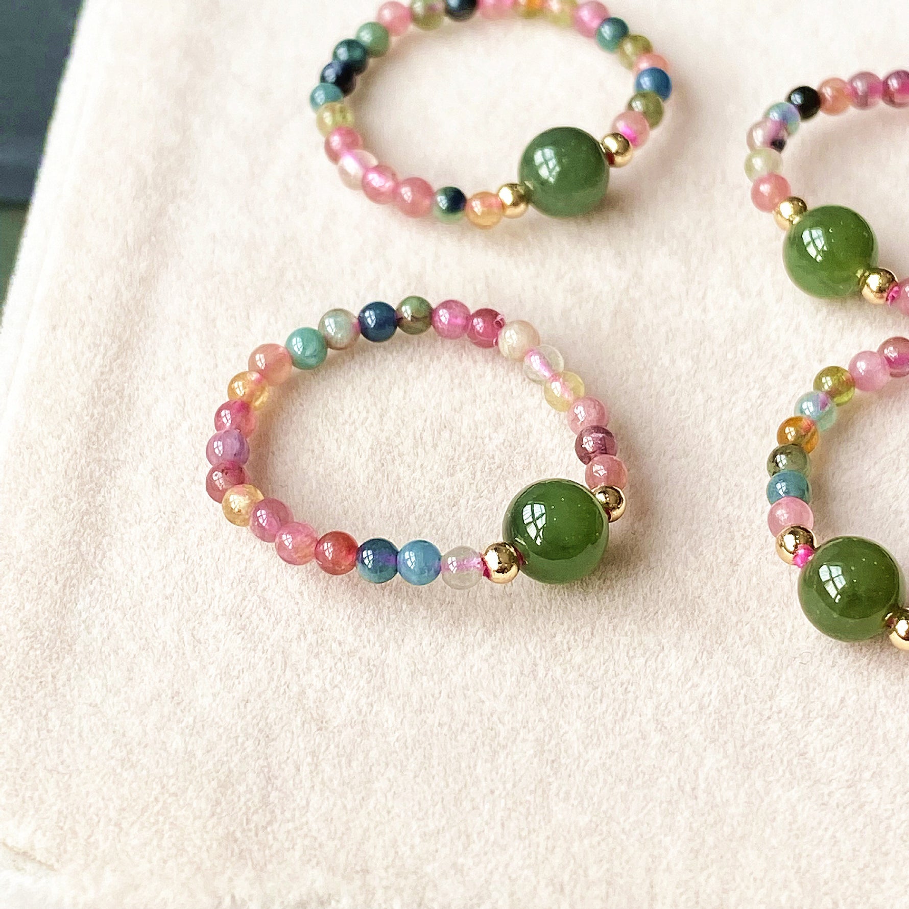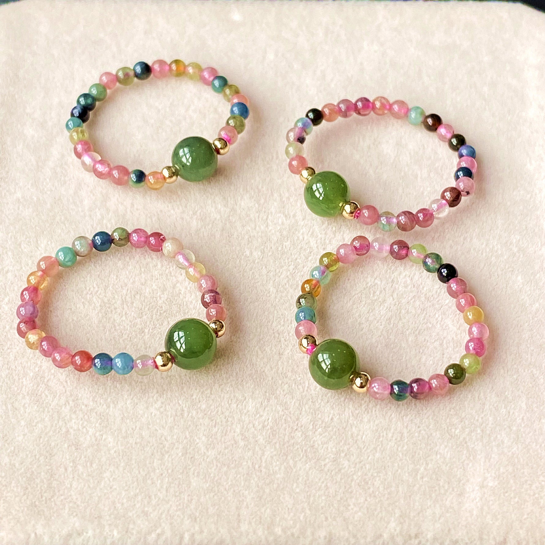💎 Natural Gemstones: Made with authentic green jade and natural tourmaline, each bead showcases unique colors and textures.