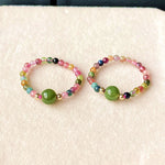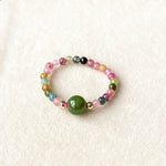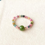 Natural Tourmaline & Green Jade Women's Stretch Ring