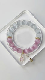 White & Pink Cat Eye Crystal Bracelet with Gourd Charm – Personalized Handmade Energy Beads