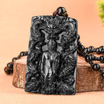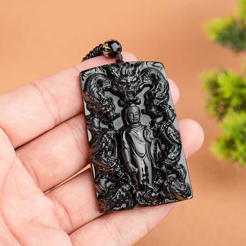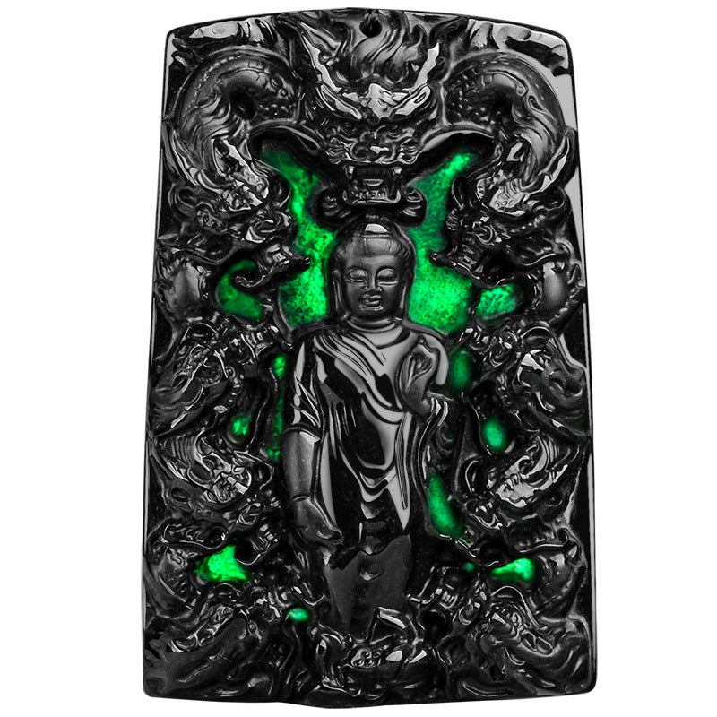 Natural A-Grade Black Jadeite Amitabha Buddha Nine Dragons "Supreme Self-Mastery" Pendant Unisex