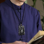 The nine dragons, symbols of auspiciousness and power, stand guard over Amitabha Buddha with a majestic demeanor. Amitabha Buddha represents compassion, wisdom, and enlightenment, guiding the wearer towards peace and fulfillment.