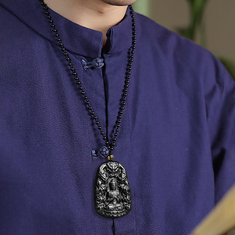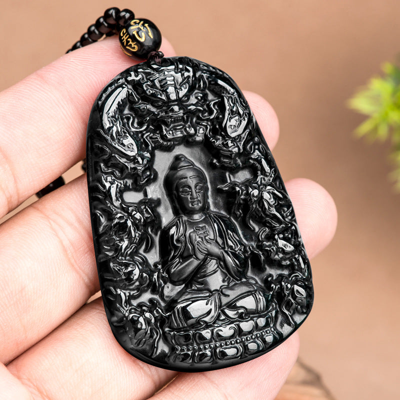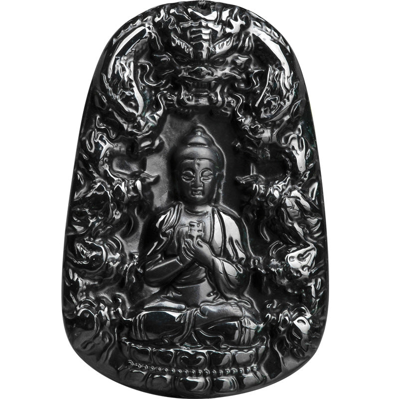 This pendant balances power and serenity — the dragons guard against negativity while Amitabha Buddha radiates peace and clarity.