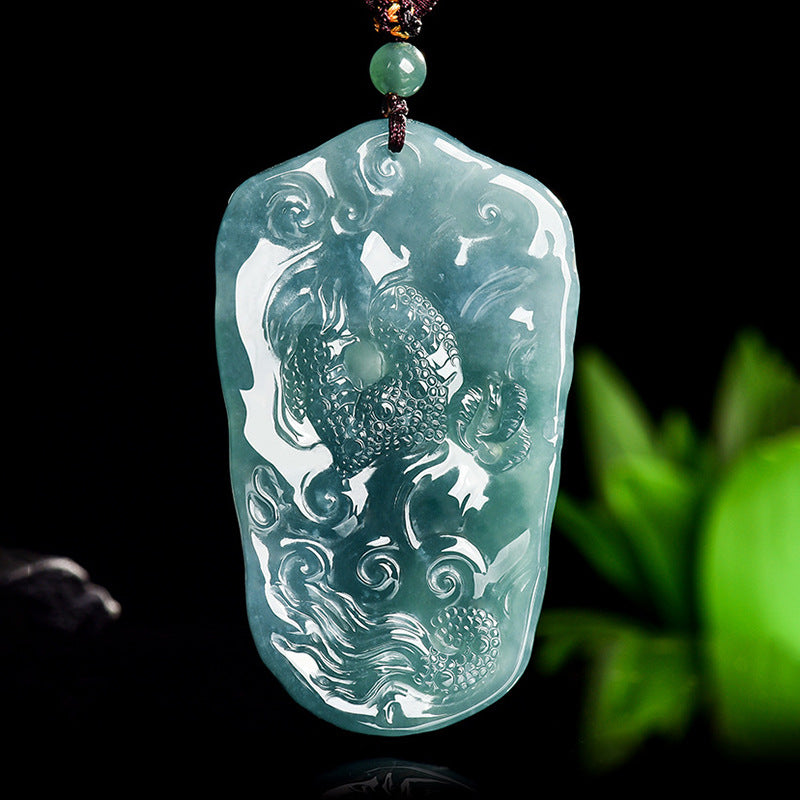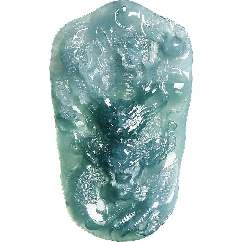 Unleash the power of the Dragon with this majestic natural blue water jadeite pendant, carved from certified A-grade jadeite. The dragon is a symbol of strength, authority, and prosperity in Eastern tradition, believed to attract powerful energy, protect the wearer, and elevate personal fortune. With its thick carving and full-bodied form, this pendant exudes prestige and spiritual force, making it ideal for individuals seeking success, protection, and leadership energy.