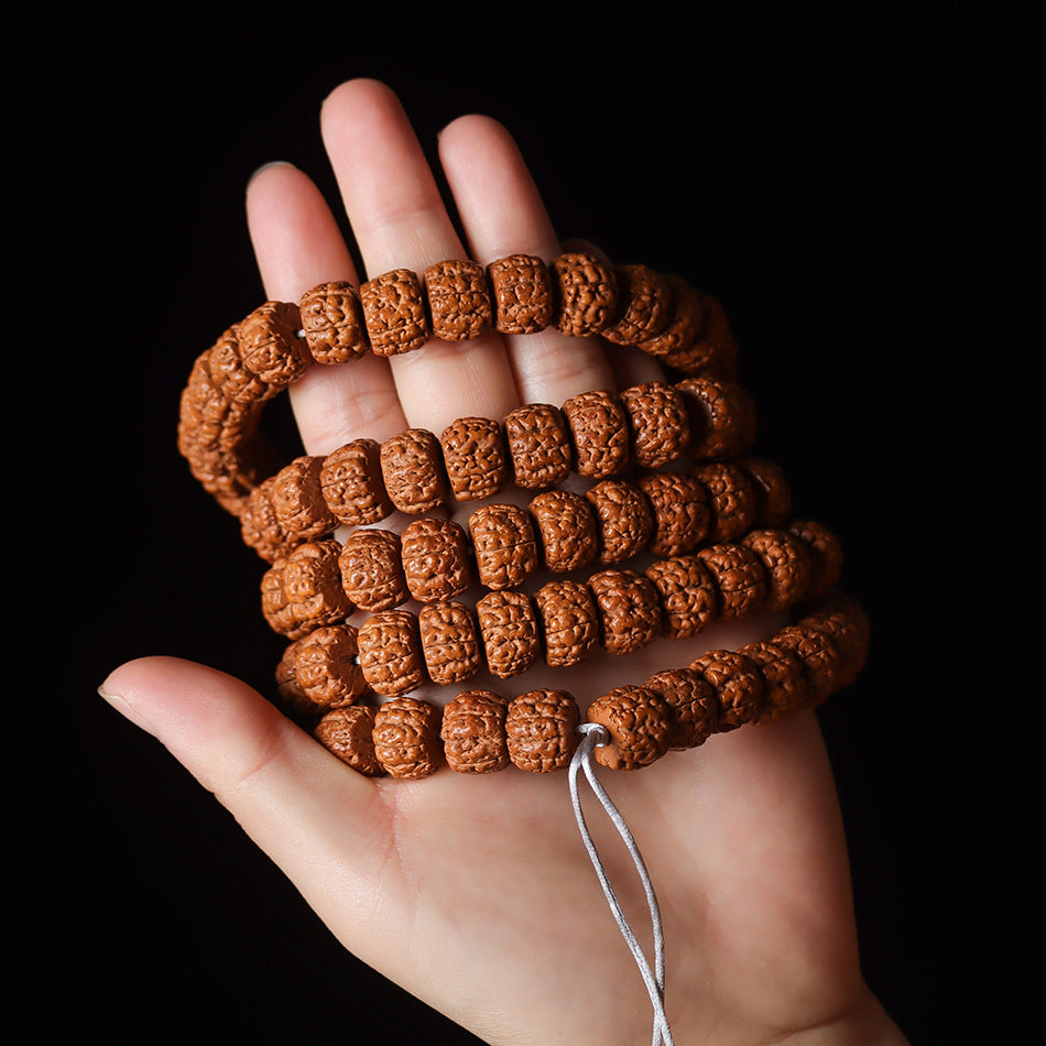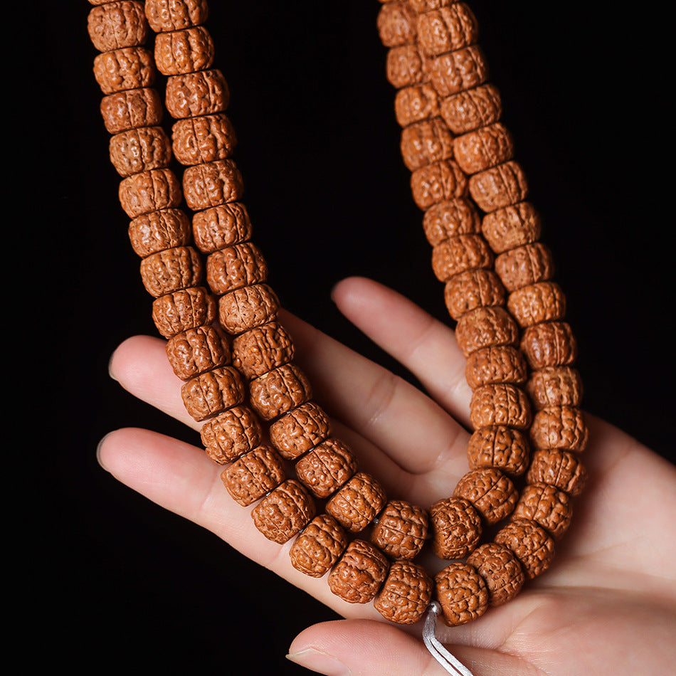 Natural Rudraksha Double Dragon Pattern 108 Mala Beads Prayer Beads