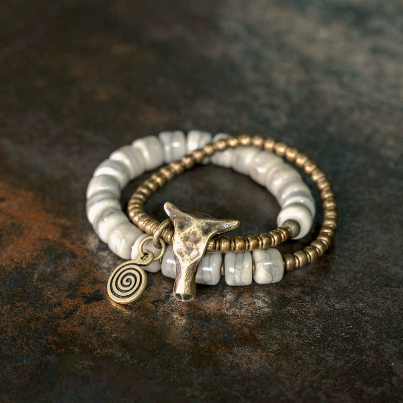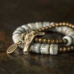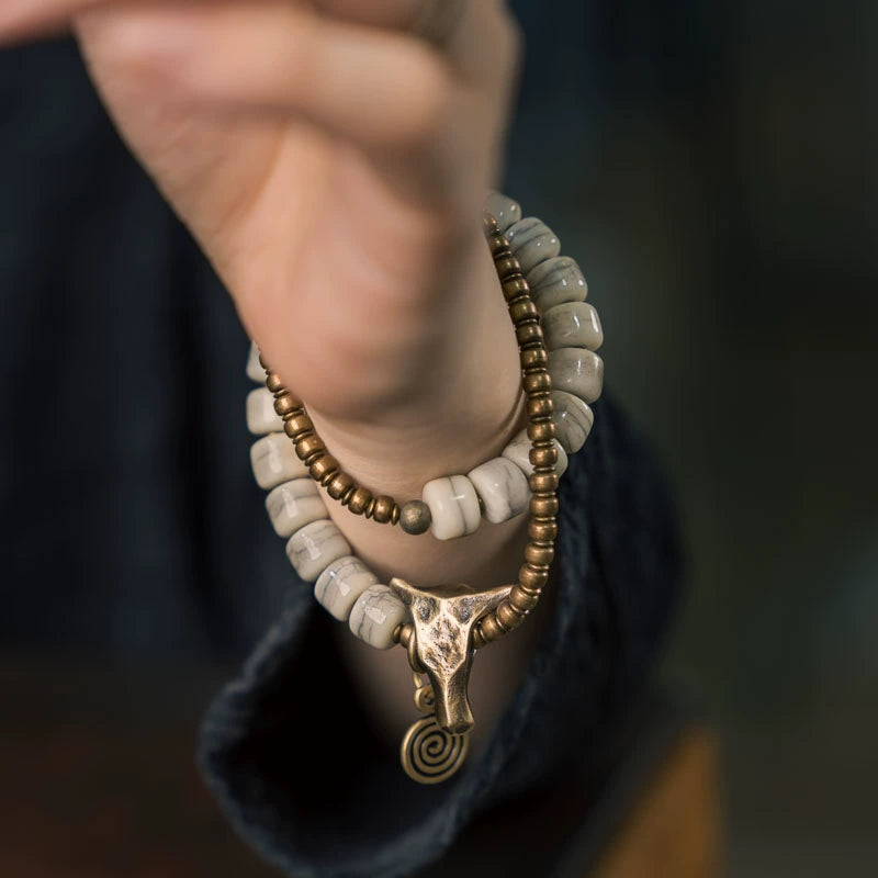 This handcrafted vintage-style bracelet combines natural yak bone beads with a bold brass bull head accent, evoking primal strength and rugged charm. Designed especially for men, it draws inspiration from traditional materials while embracing a raw, masculine aesthetic—perfect for those who walk with purpose and power.