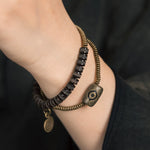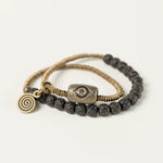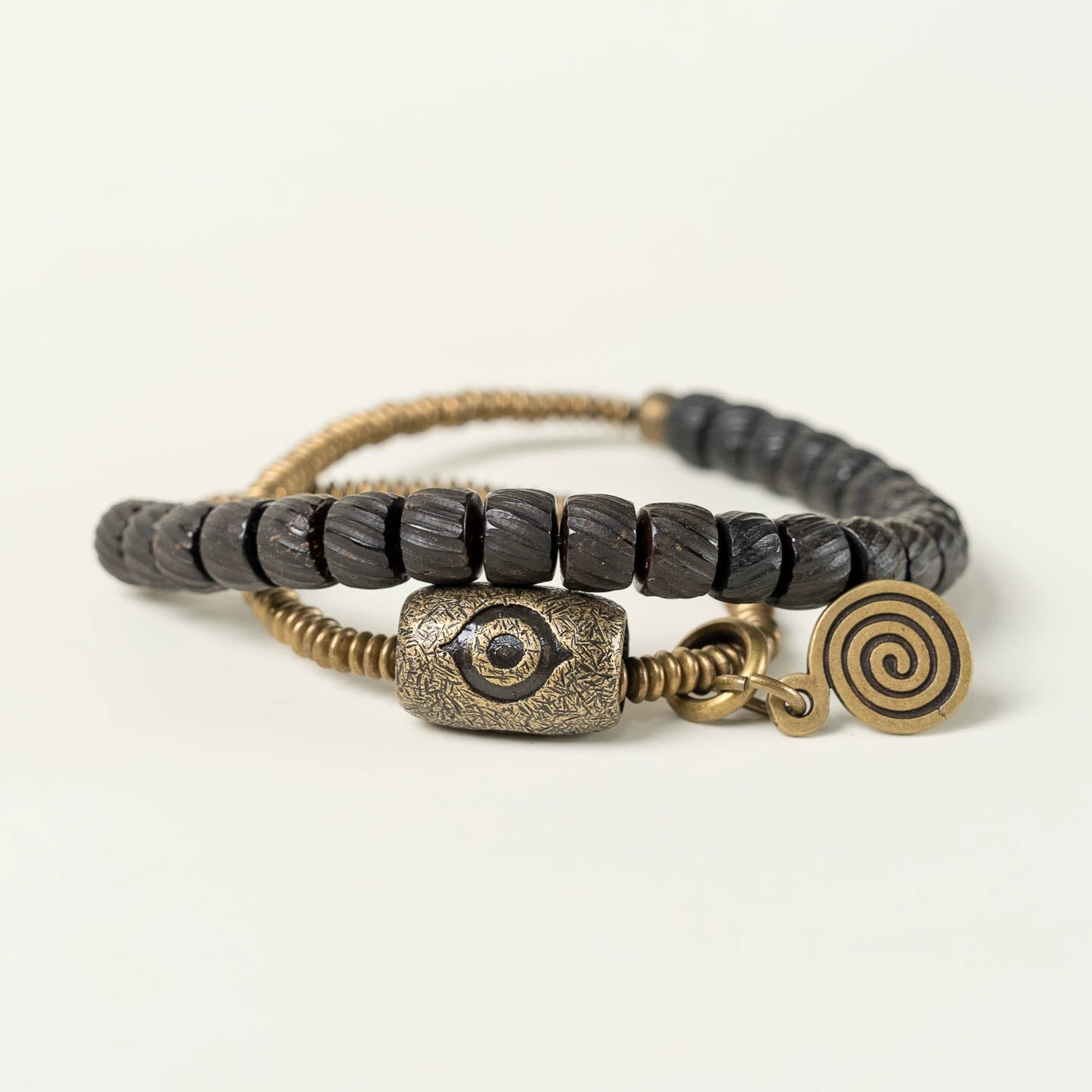 Rooted in natural strength and Himalayan tradition, this Tibetan handmade double-wrap bracelet features dark, polished coconut shell beads paired with a bold brass Dzi-style centerpiece. Designed to wrap twice around the wrist, it carries a powerful yet grounded presence—offering both style and meaning.