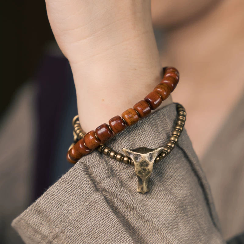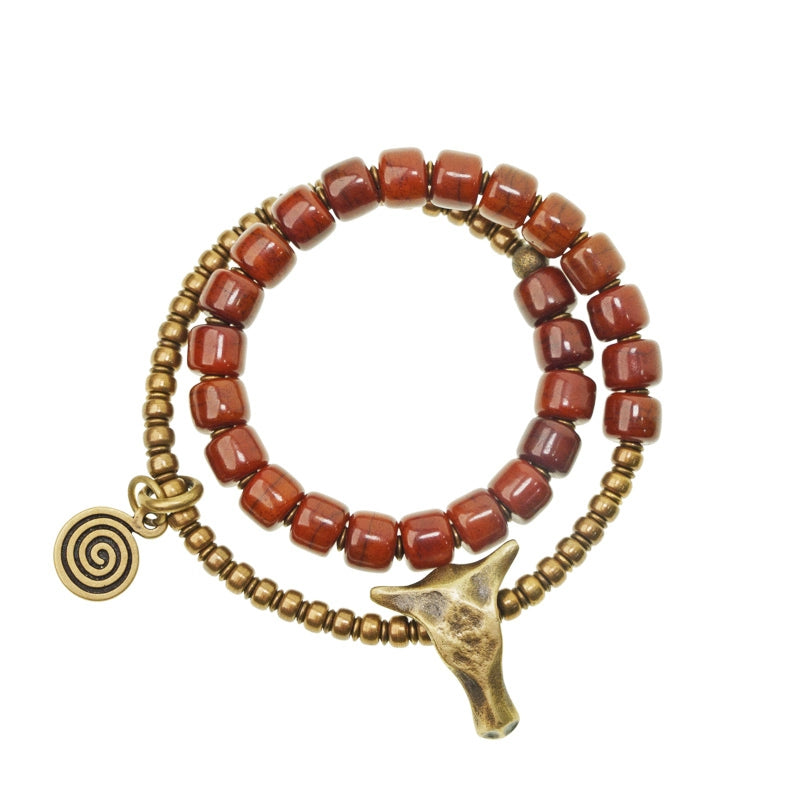 Tibetan Handmade Double-Wrap Yak Bone & Brass Bull Head Bracelet · Primal Strength, Sacred Grounding