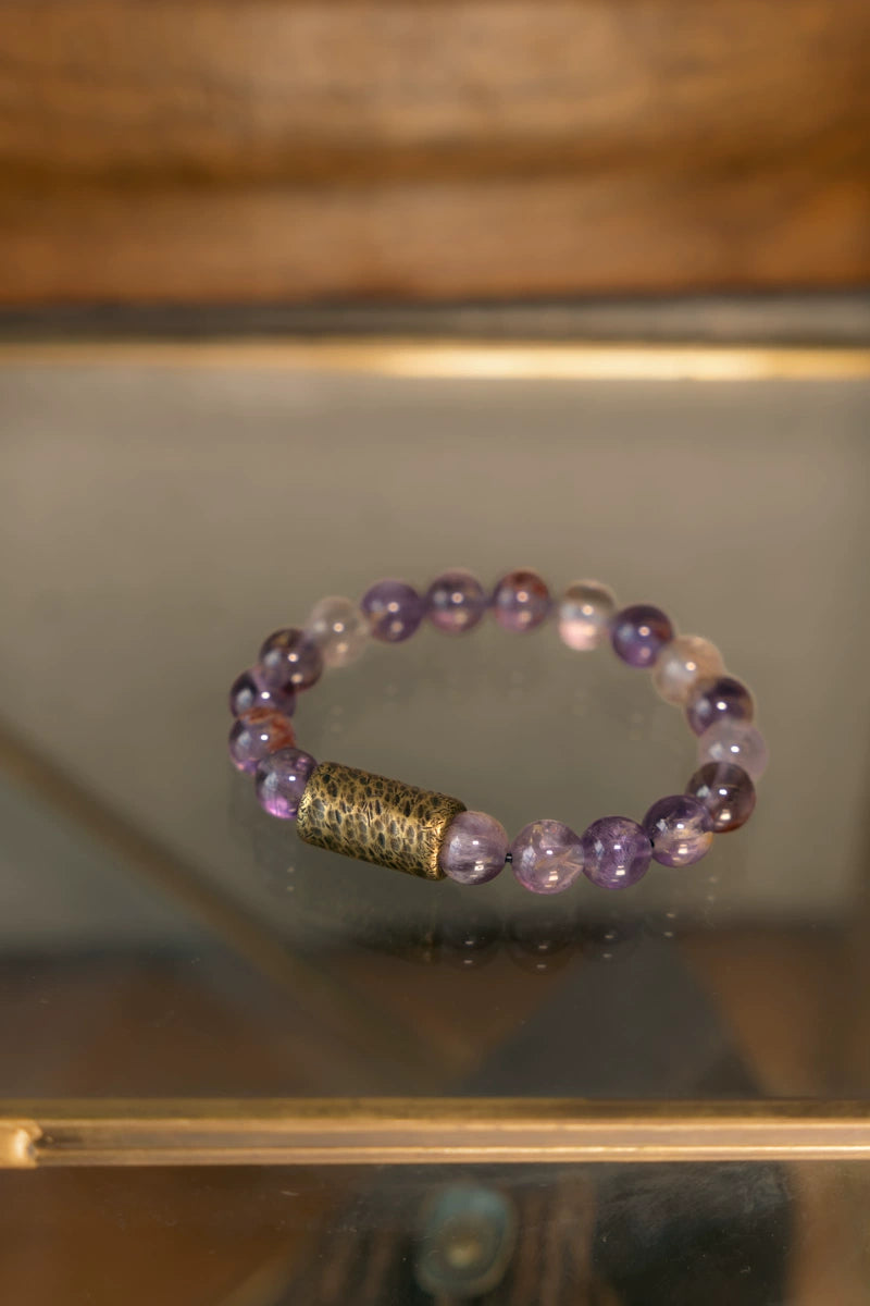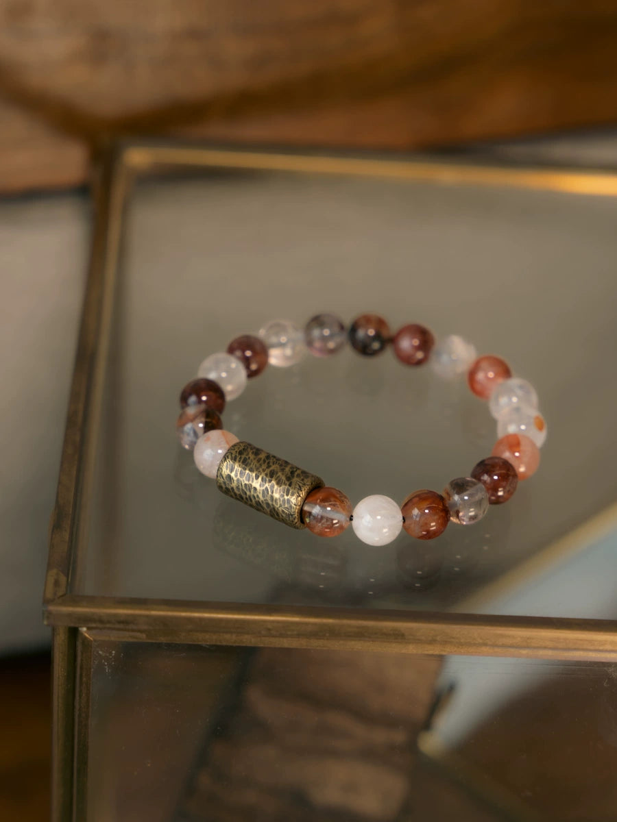 This Tibetan-style single-strand crystal bracelet is a refined blend of natural gemstone energy and vintage brass design, offering both beauty and meaning. Each bead carries symbolic power to support emotional balance, clarity, and intention.