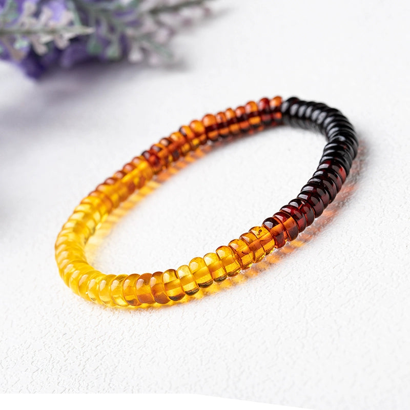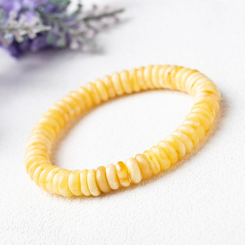 Crafted from natural beeswax amber, this bracelet features abacus-style disc and spacer beads with a warm golden gradient. The varying bead sizes (2mm to 8mm) create a textured, elegant look. Designed in a minimalist, sweet style, it suits both casual and formal occasions. Comes beautifully packaged in a premium gift box.