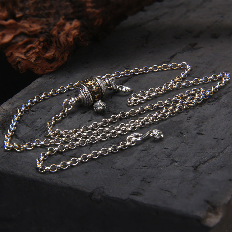925 Sterling Silver Tibetan Prayer Wheel Pendant Sweater Chain