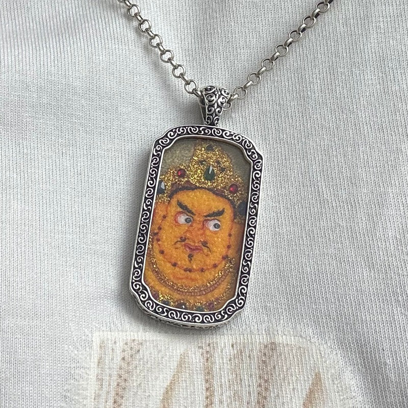 Yellow Jambhala is revered as the Buddhist god of wealth, associated with abundance, protection, and removing financial obstacles. Wearing this pendant symbolizes prosperity, stability, and the flow of positive fortune, offering the wearer confidence and blessing in their financial journey.