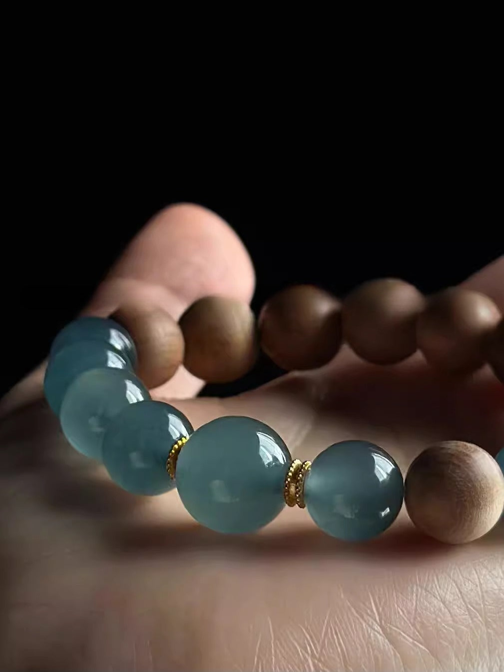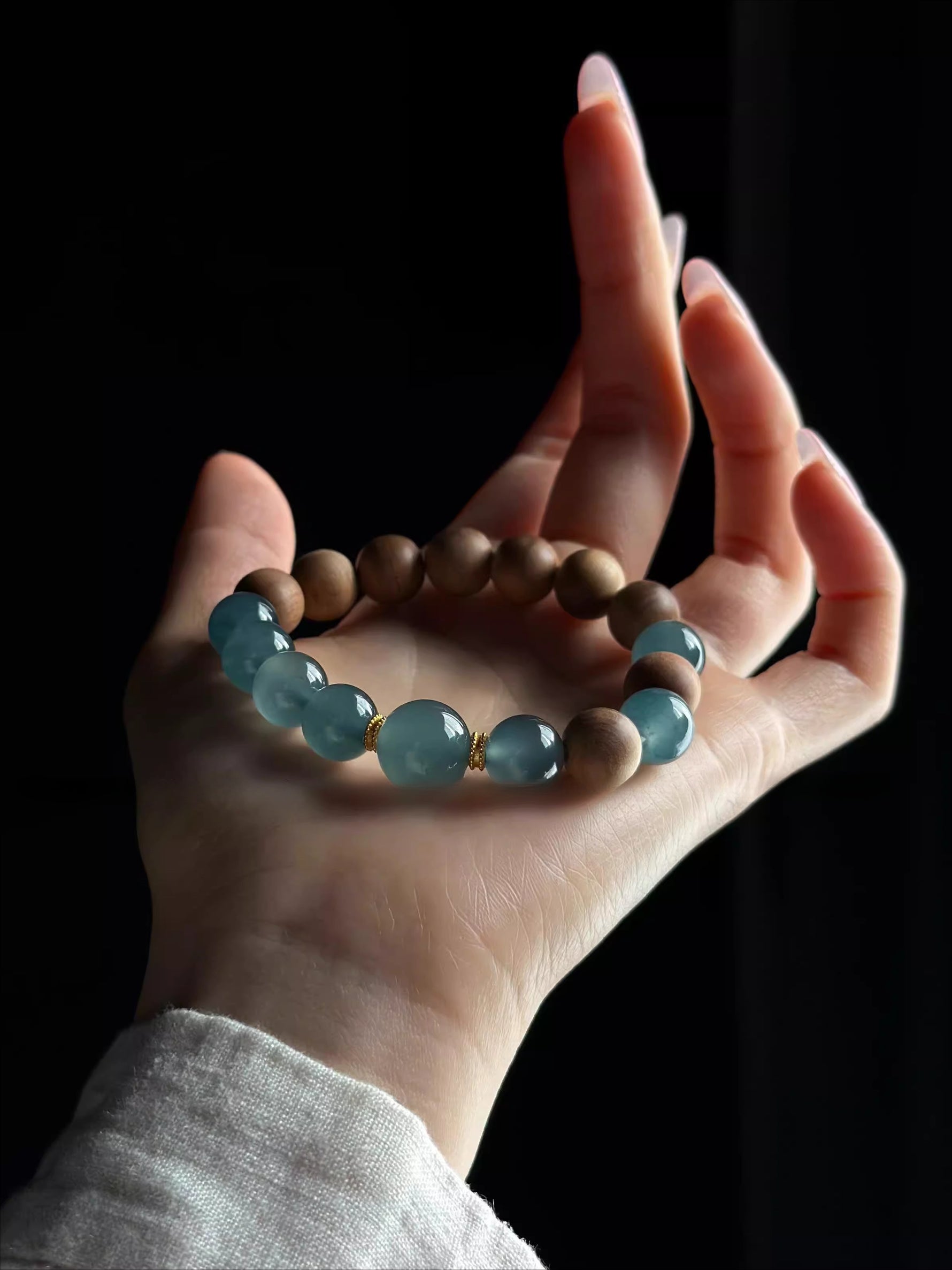 Material: Grade A Blue Water Jadeite + Indian Old Sandalwood
