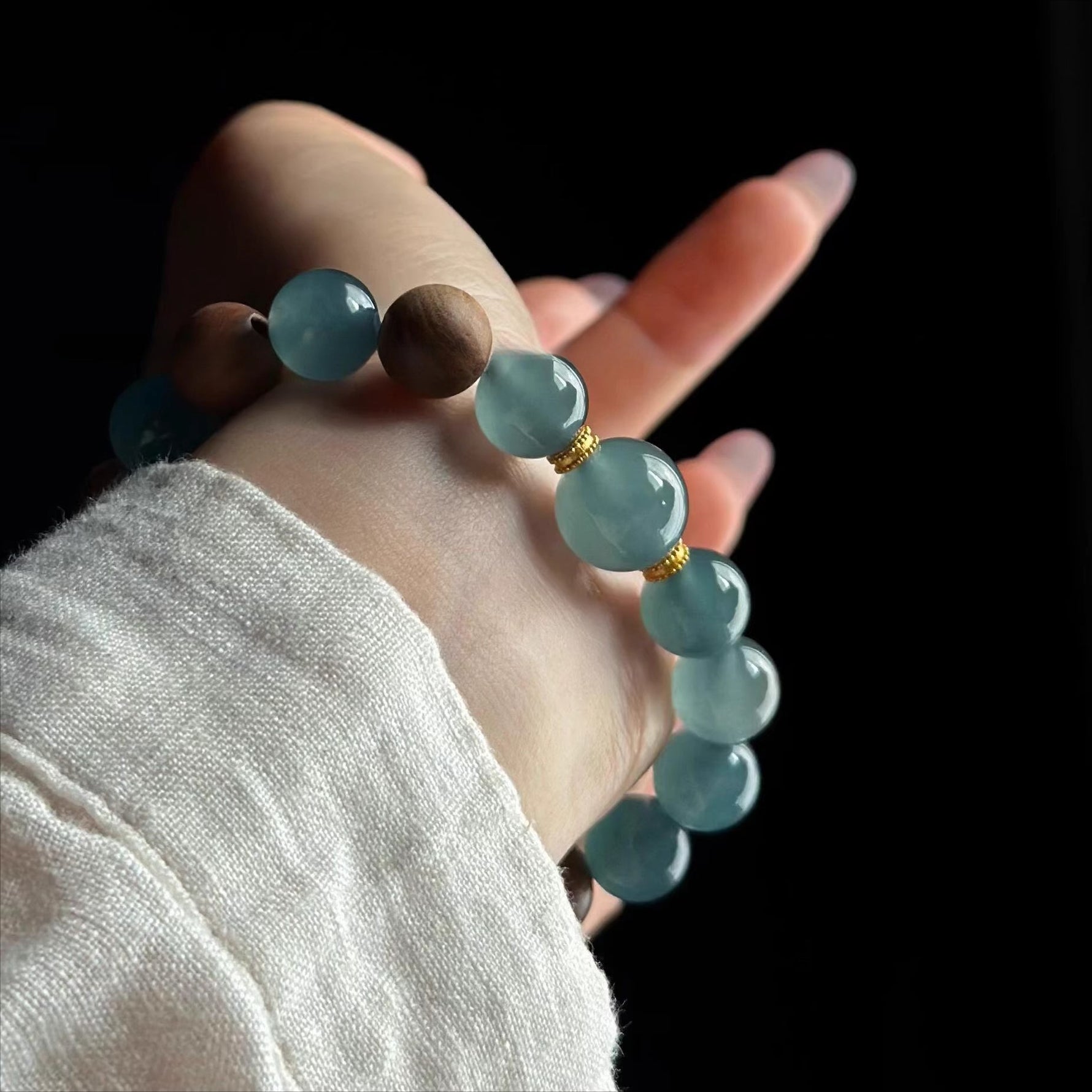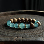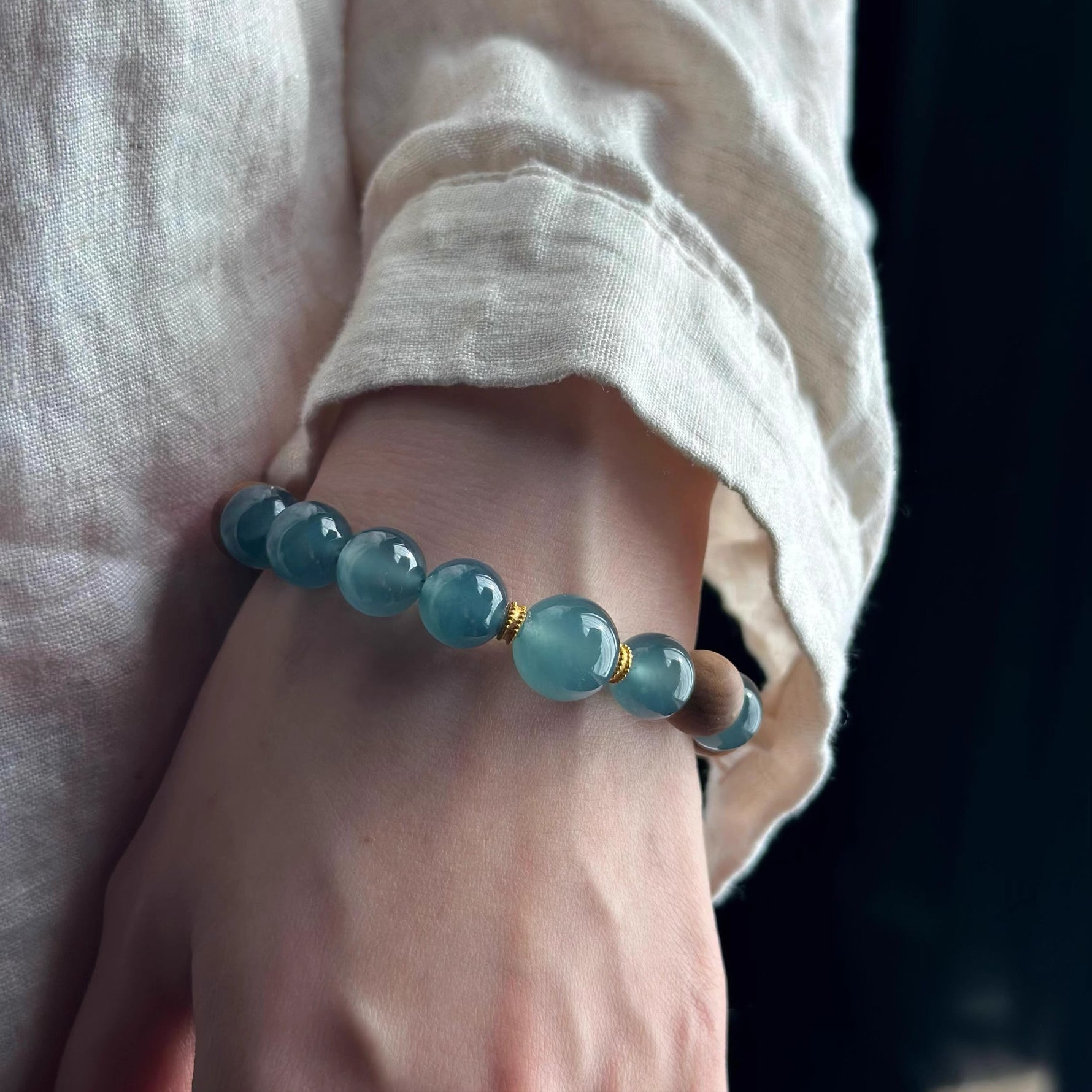 Natural Blue Water Jadeite Bracelet with 10mm Beads & Indian Old Sandalwood – Single Wrap, Unisex