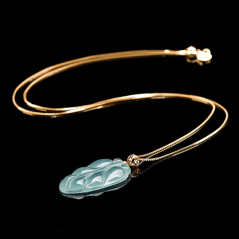 In Eastern tradition, the leaf symbolizes new beginnings, continuous growth, and a harmonious life. Combined with ice-blue jadeite, this pendant serves as a talisman for positive energy, clarity, and spiritual balance. It is not just jewelry—it is a wearable charm for elegance, renewal, and lifelong blessings.