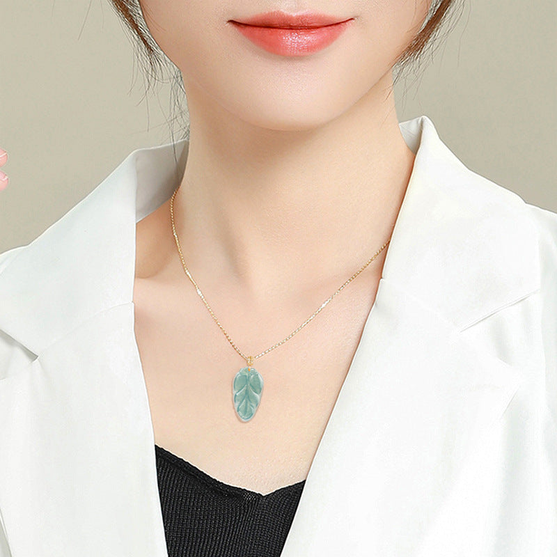 The leaf motif represents growth, renewal, and harmonious energy. Blue jade is traditionally believed to balance emotions, attract positive vibrations, and promote inner peace.