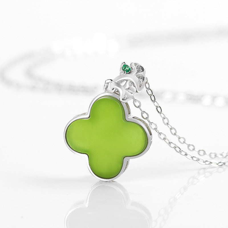 Celebrate luck, elegance, and tradition with this Natural Spinach Green Aged Hetian Green Jade Four-Leaf Clover Pendant with S925 Silver for Women. Crafted from genuine Hetian green jade, the smooth pendant showcases a rich, natural color and polished finish. The four-leaf clover design symbolizes good fortune, prosperity, and harmony, making it a meaningful emblem for everyday wear. Lightweight and versatile, it’s perfect as a subtle accent or a thoughtful gift for someone special.