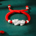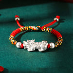 Sterling Silver PiXiu Wealth Vajra Knot String Braided Kids Child Bracelet