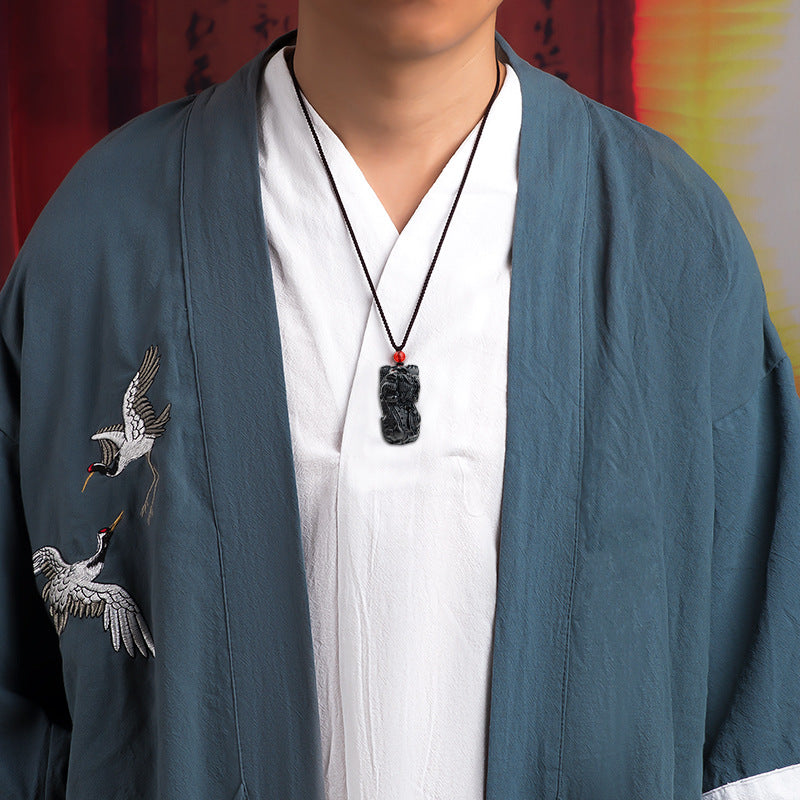 Natural A-Grade Black Jadeite Pixiu Wealth Attraction Pendant for Men and Women