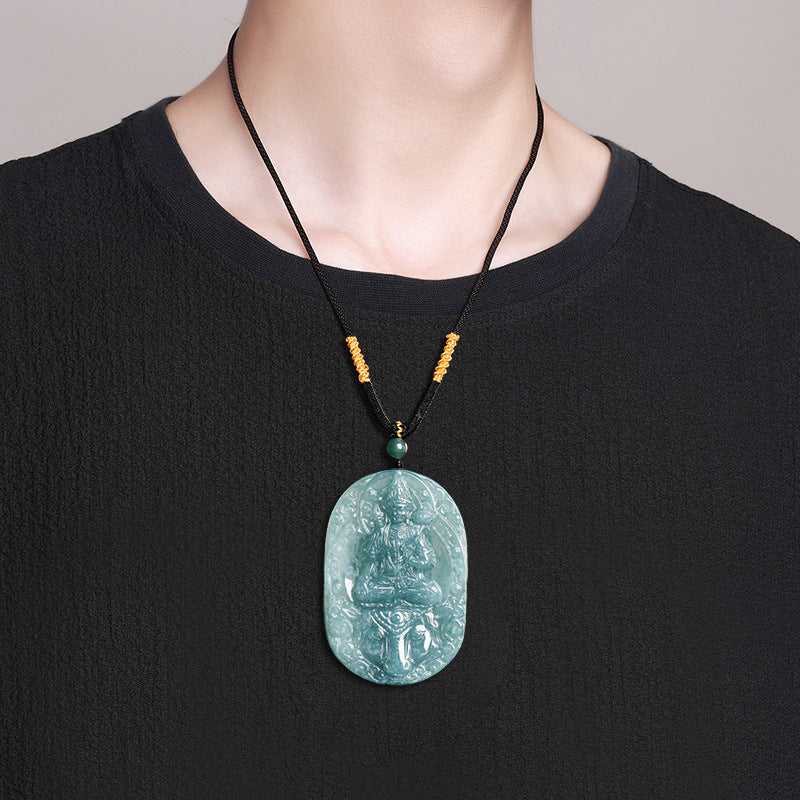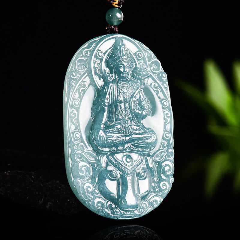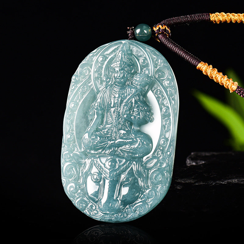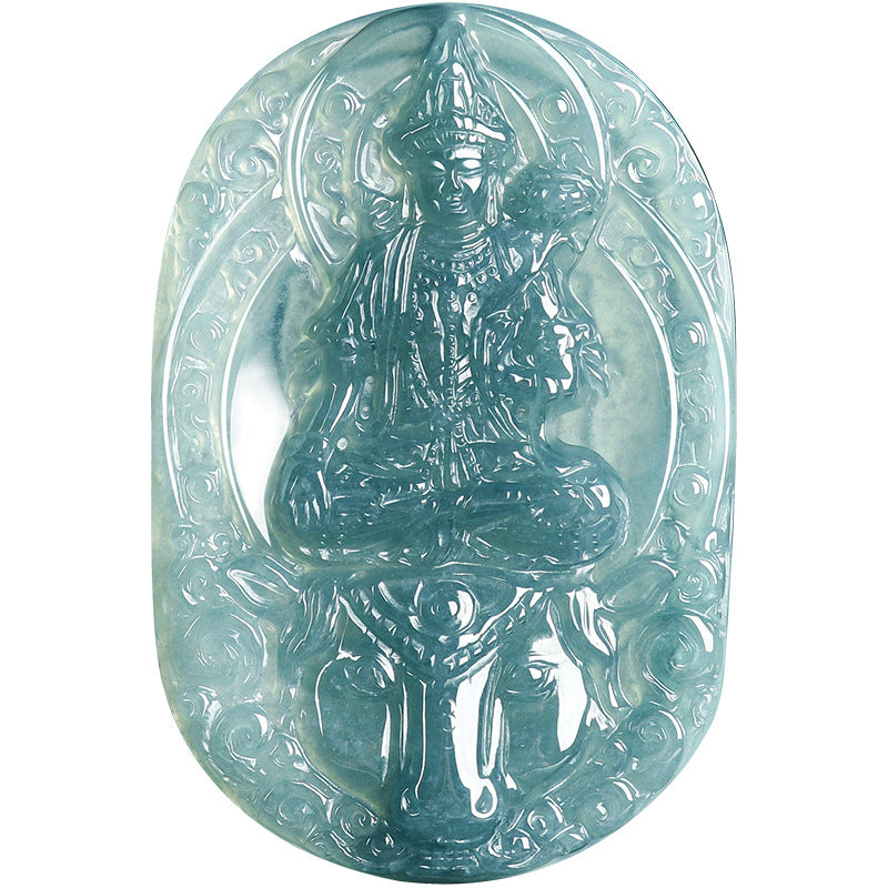 In Eastern tradition, Mahasthamaprapta Bodhisattva symbolizes wisdom, guidance, and protection. Combined with ice-blue jadeite, this pendant serves as a talisman to attract spiritual blessings, safeguard the wearer, and enhance life balance. More than jewelry, it is a lifelong charm for protection, luck, and personal growth.