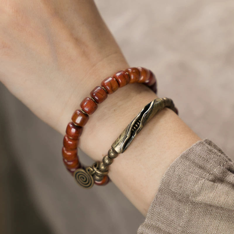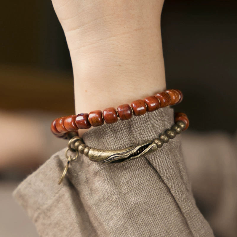 Tibetan Handmade Yak Bone Double-Wrap Bracelet – Long Style with Vintage Brass Accents